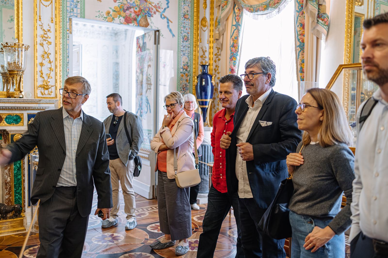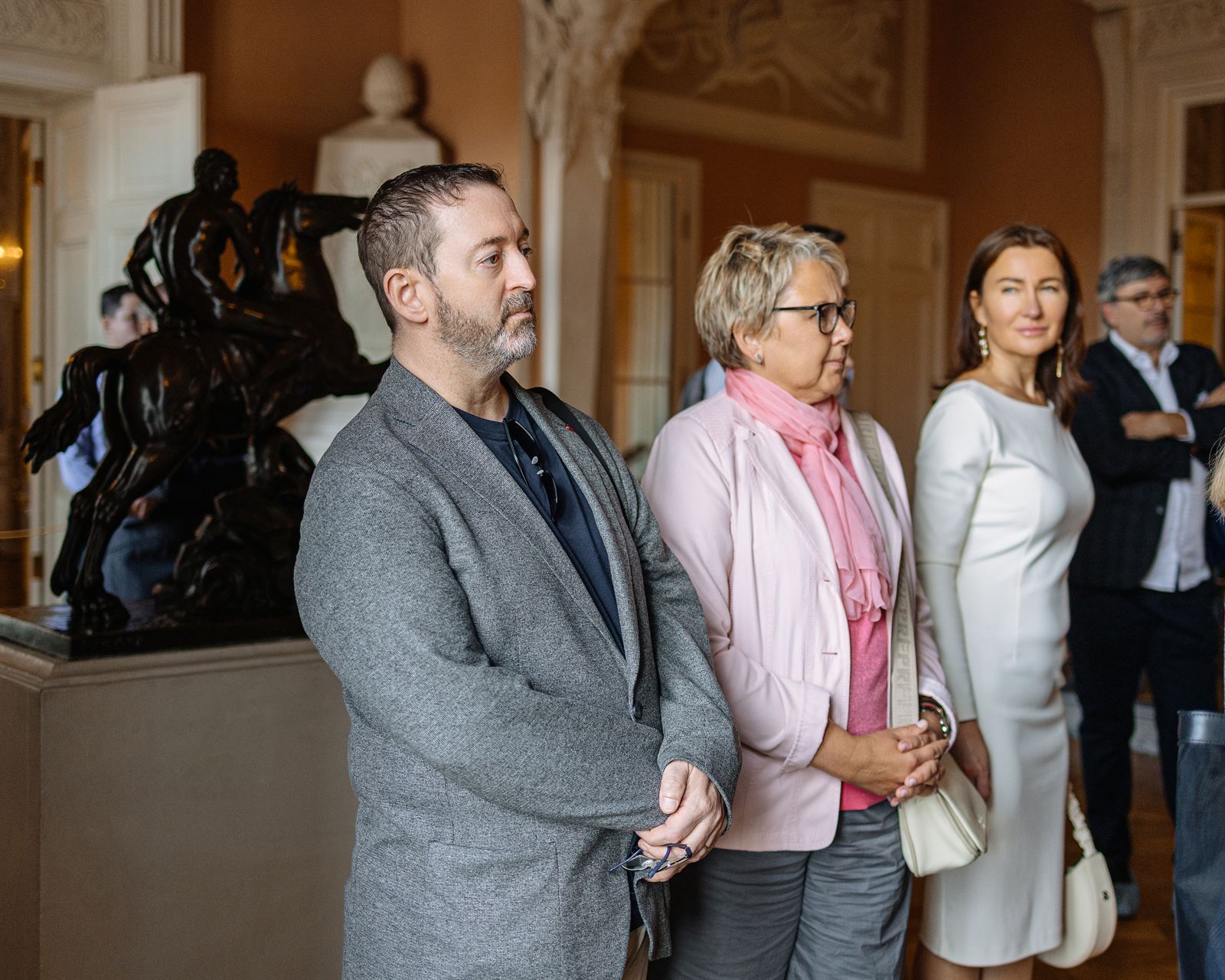 28 августа Всемирный клуб петербуржцев и оргкомитет Международной премии «Золотой Трезини» совместно с музеем-заповедником «Павловск» провели культурно-научный вояж в один из главных дворцово-парковых ансамблей России. Программа началась с экскурсии по Павловскому парку и дворцу, после чего участники собрались на заседание в Концертном зале.