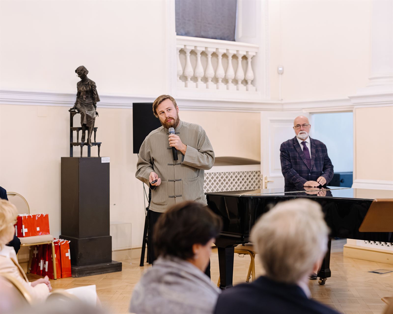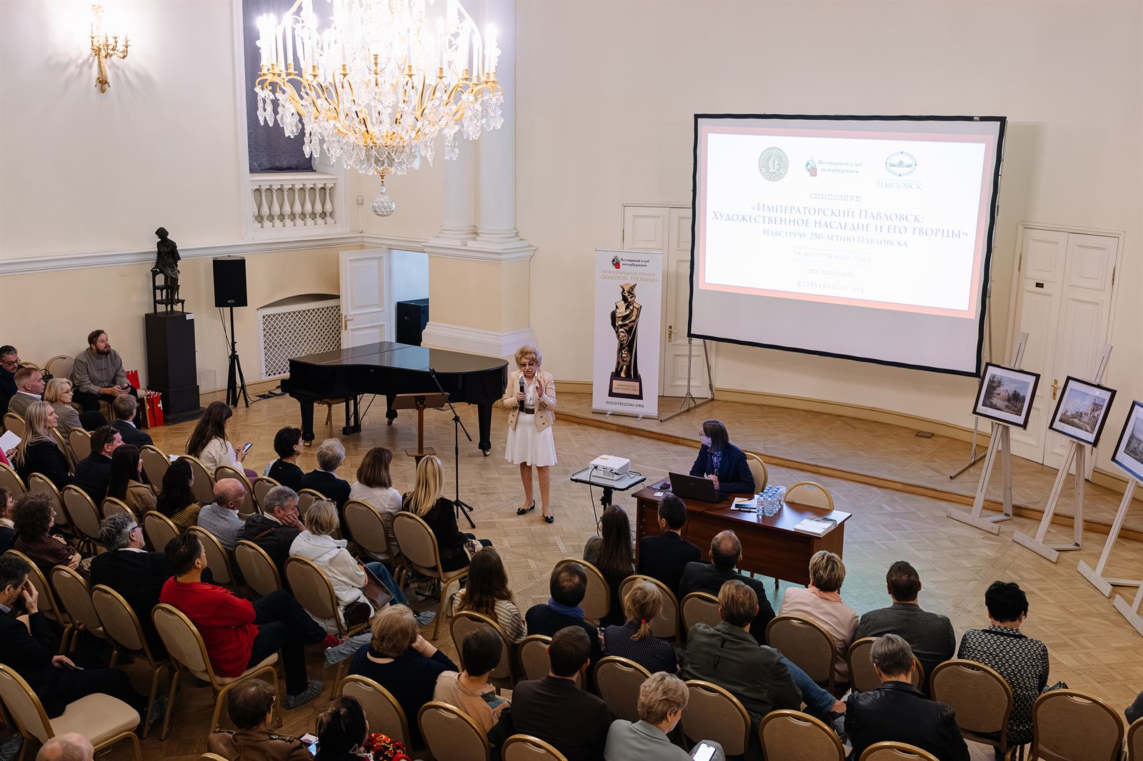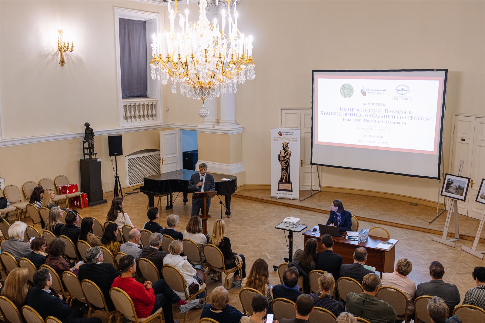Центральным событием дня стал симпозиум «Императорский Павловск: художественное наследие и его творцы». С приветственными словами к собравшимся обратились директор ГМЗ «Павловск» Вера Дементьева, председатель оргкомитета премии «Золотой Трезини» Павел Черняков, генеральный консул Швейцарии в Санкт-Петербурге Беатрис Латтайер и начальник отдела науки, технологии и образования посольства Швейцарии в России Андрей Мельников.