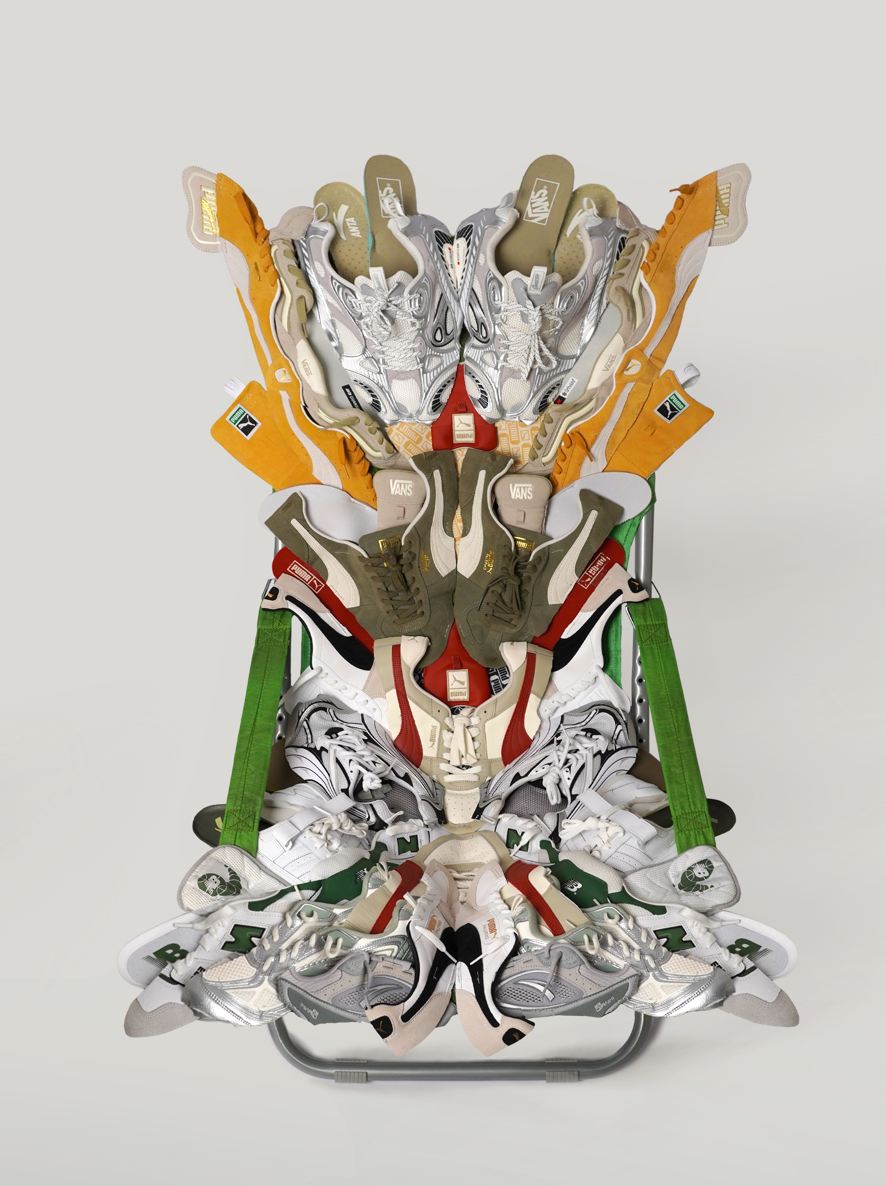 Первое место на конкурсе арт-объектов от партнера премии "Золотой Трезини" занял апсайкл-стул из 12 пар кроссовок.